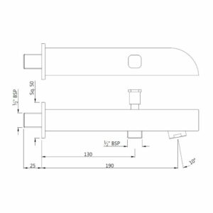 Bras de Douche carre depuis le mur – Noir Mat