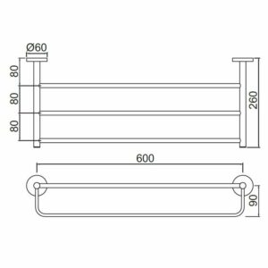 Porte-serviettes simple 600 mm de long – Noir Mat
