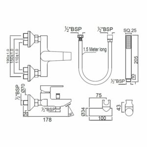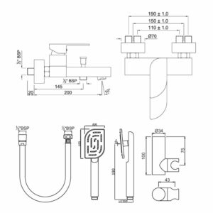 KIT MITIGEUR BAIN DOUCHE A/INVERS+FLEXIBLE+DOUCHETTE