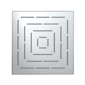 Description :Douche de tête Alive Maze 200 x 300 mm à bord rond et tête rectangulaire à débit unique (corps et plaque frontale en acier inoxydable) avec système de nettoyage Rubit